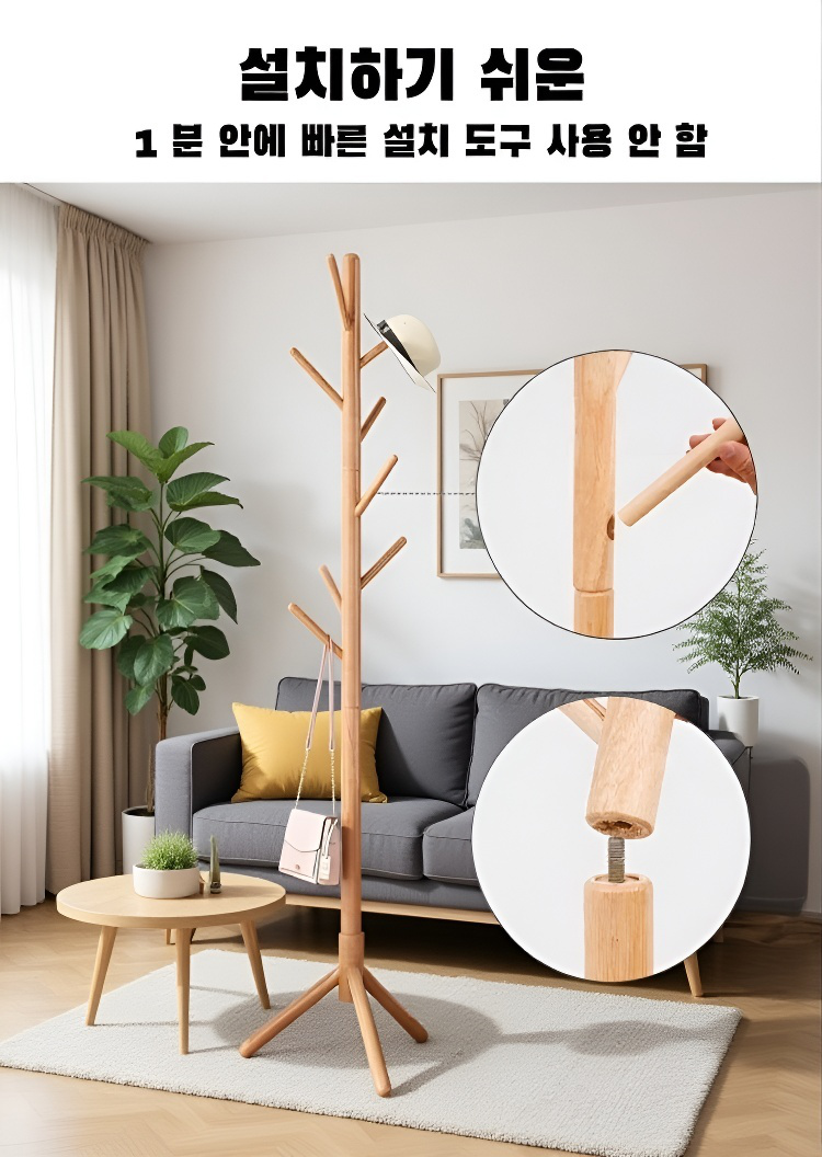 프리미엄 원목 자작나무 모자걸이 가정용