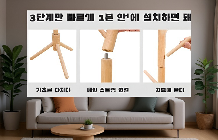 가정용 자작나무 모자걸이 설치 모습