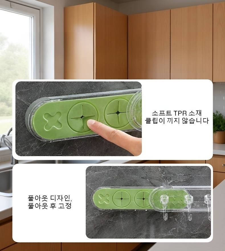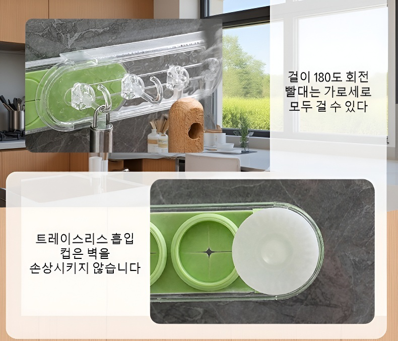 면타공 필요 없는 조절식 신축 흡착 후크 설치 모습